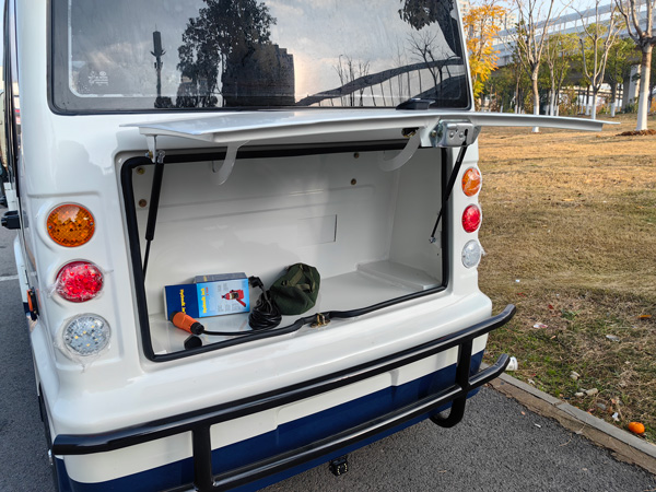 就在昨天武漢某街道辦再次在我司訂購一批電動巡邏車成功交車?yán)玻妱友策壾囄幢苊馊粘2僚?,特定制一套前后保險護(hù)欄,這樣既保證整車,同時又增添了整車巡邏車的威嚴(yán)感,讓整車外觀看上去更具威懾力,同時整車玻璃都貼有汽車專用膜,這樣讓整車的私密性及防紫外線更強(qiáng)更有效。同時為保證整車功能更豐富,此款車專配有了倒車影像,讓整車停車倒車更方便。整車的實用性增加更強(qiáng)。整車仍使用是熱銷的一款配置,保證整車在街道內(nèi)日常巡邏需求,下面我們一起來看看這款電動巡邏車交車照片吧。