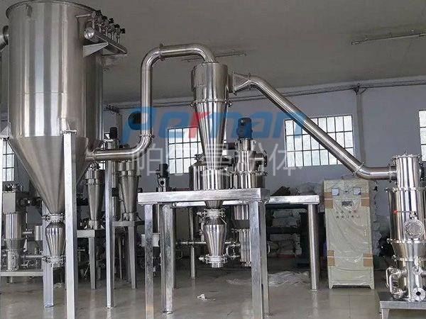 氣流粉碎機與旋風分離器、除塵器、引風機組成一整套粉碎系統(tǒng)。壓縮空氣經(jīng)過濾干燥 后,通過拉瓦爾噴嘴高速噴射入粉碎腔,在多股高壓氣流的交匯點處物料 被反復碰撞、磨擦、剪切而粉碎,粉碎后的物料在風機抽力作用下隨上升氣流運動至分級區(qū),在高速旋轉的分級渦輪產生的強大離…
